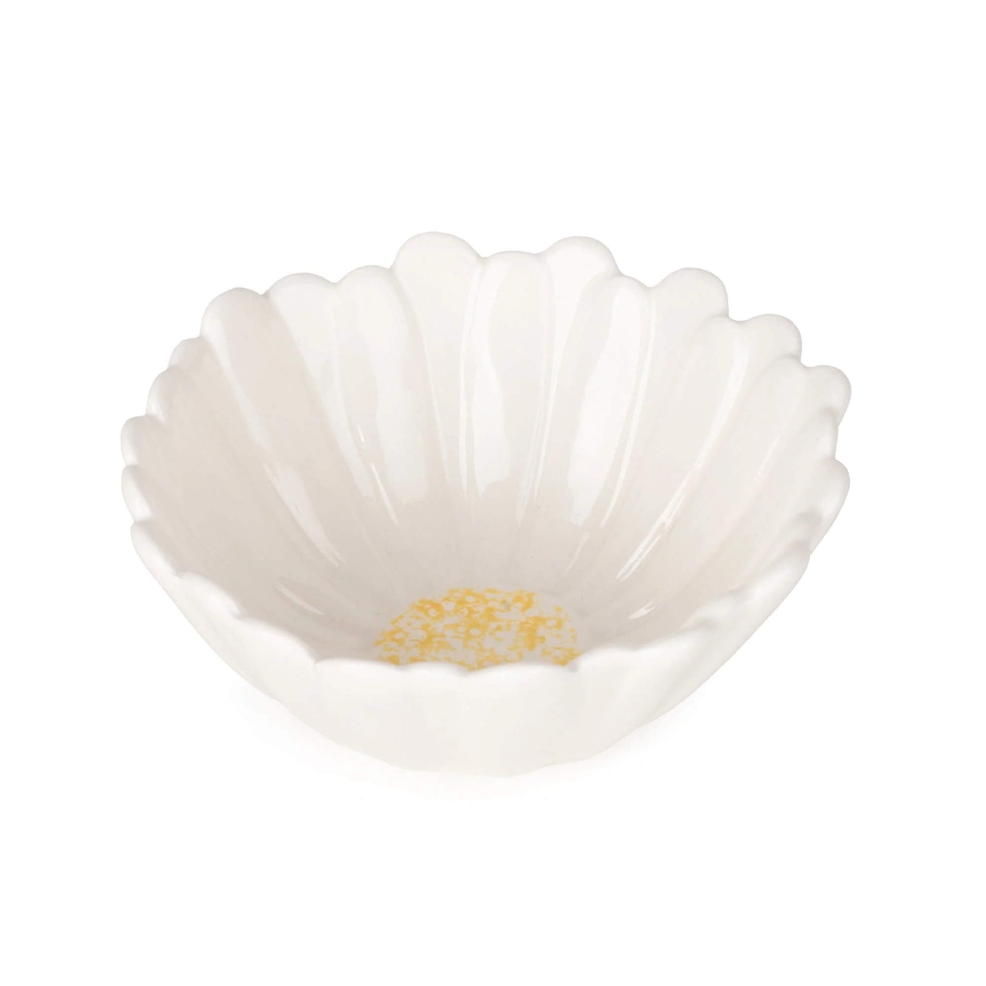 Beautifully crafted from high-quality ceramic, this eye-catching bowl features soft petal-shaped contours, a clean white finish, and a warm yellow centre inspired by the heart of a daisy. Both practical and decorative, it’s ideal for serving snacks, storing small essentials, or adding a cheerful floral accent to your space. Perfect for everyday use or special occasions, this charming bowl is designed to delight and brighten any table or room.