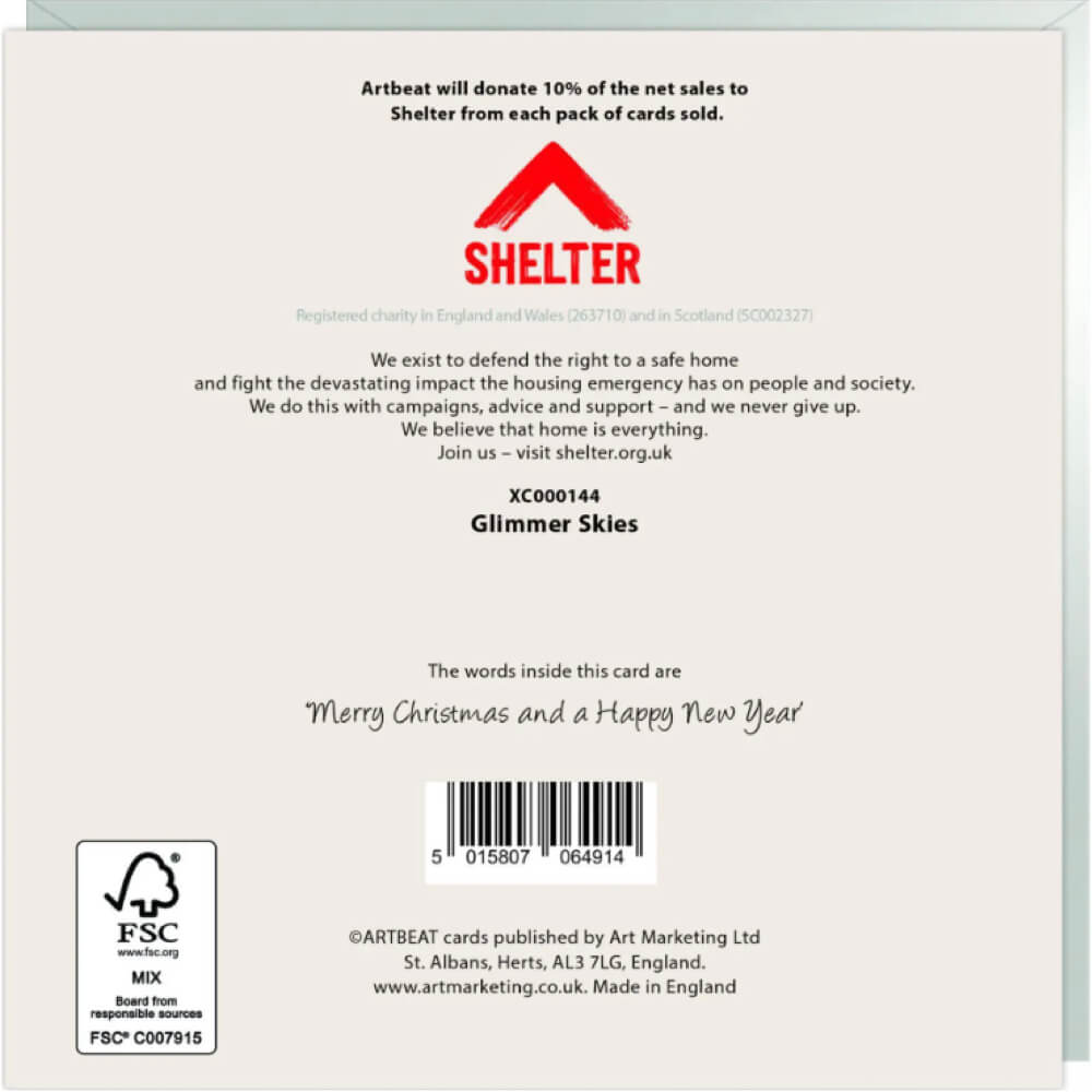 Artbeat donates 10 percent of the net sales from each pack sold to the charity Shelter. This helps millions of people every year struggling with bad housing or homelessness
